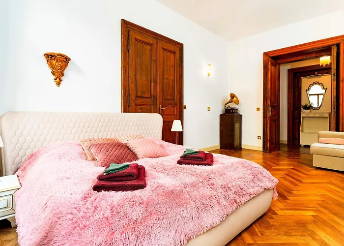 Imperial Deluxe Suite Praga, di 124 m², accoglie i viaggiatori nel centro di Praga, a 2 km dal Muro di Lennon. Dotato di Wi-Fi, un bancomat e servizio di cambio valuta, quest'appartamento si trova vicino al Municipio della Città Vecchia con l'orologio astronomico.